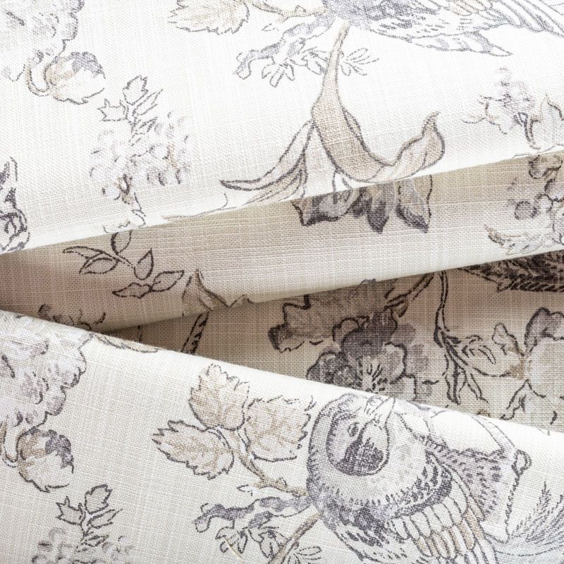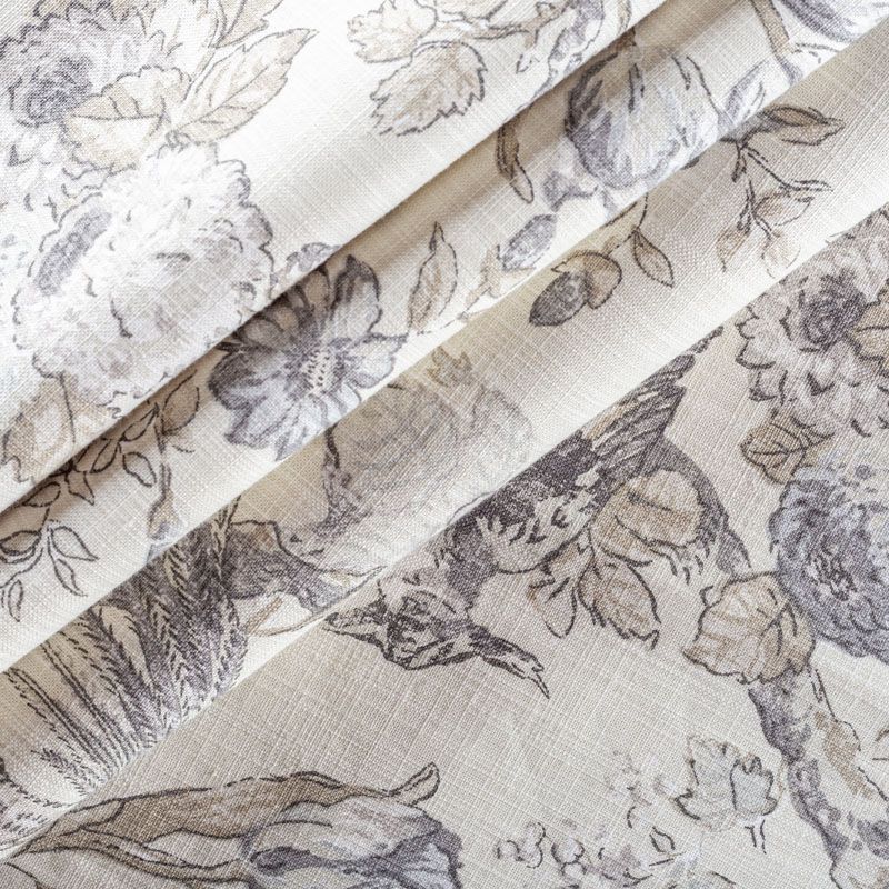 Элегантная ткань из коллекции Ренессанс известного бренда Fryett's с тропическим рисунком, выполненным в мельчайших деталях, нанесенных на текстурированную хлопковую основу. Ткань средней плотности, прекрасно держит форму, драпируется в устойчивые складки. Подойдет для плотных штор, покрывал, подушек, скатертей, салфеток  и других элементов текстильного интерьера как в самостоятельном исполнении, так и качестве компаньона к цветным варинтам.