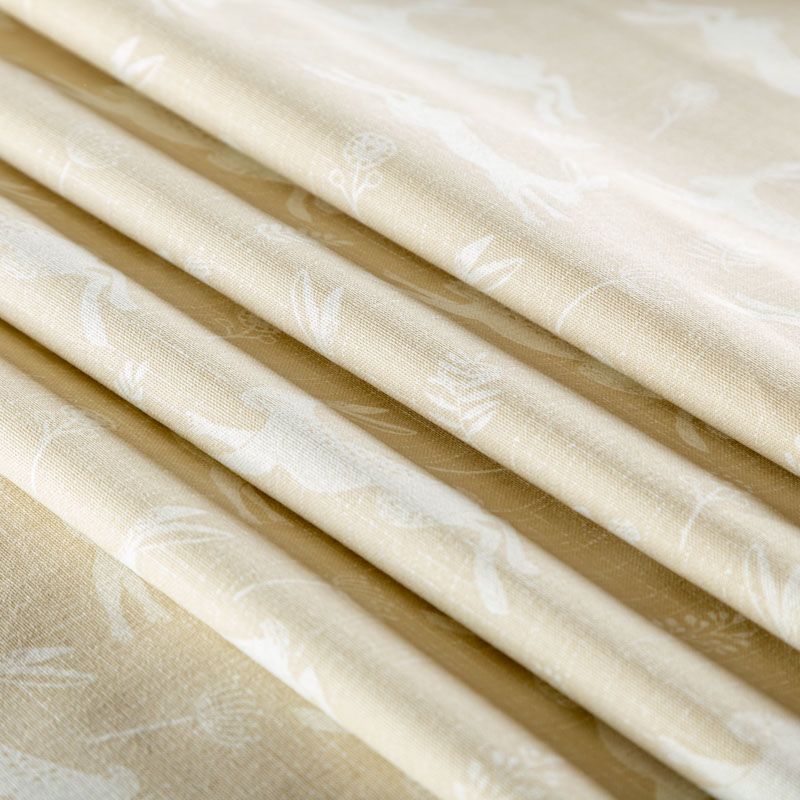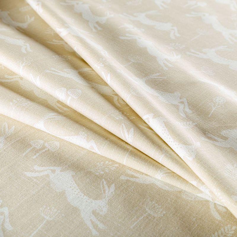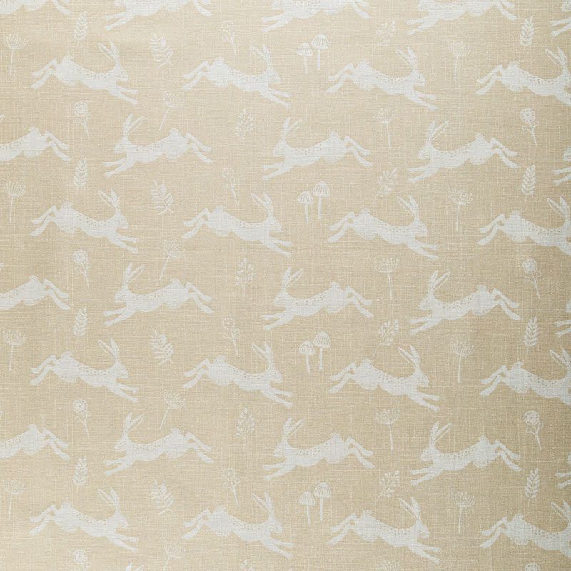 Английская ткань из коллекции Джамп известного бренда Fryett's со сказочный дизайном с изображением прыгающих зайцев на текстурированной хлопковой основе. Ткань средней плотности, прекрасно держит форму, драпируется в устойчивые складки. Подойдет для плотных штор, покрывал, подушек, скатертей, салфеток и других элементов текстильного интерьера.