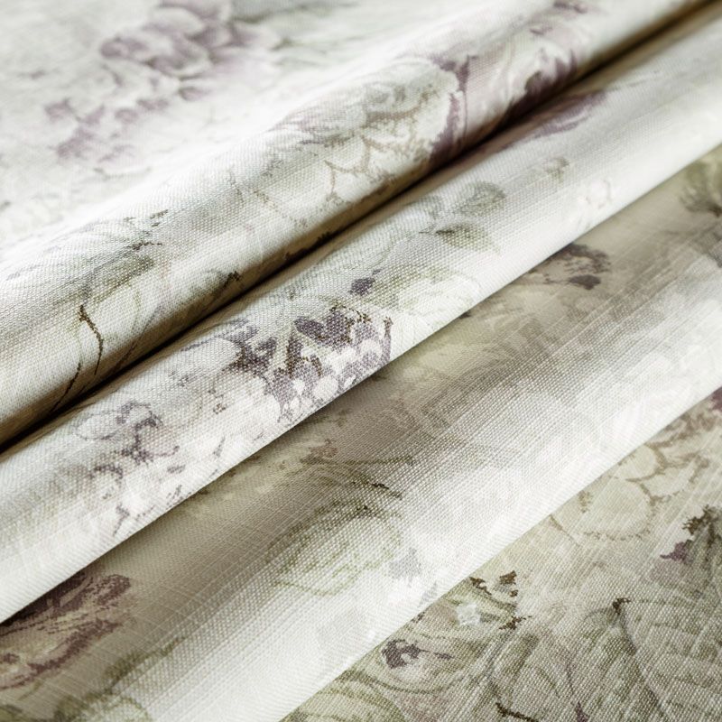 Хлопковая портьерная ткань с растительным принтом в монохромной гамме на светлом сером фоне. Ткань средней плотности, без блеска, хорошо драпируется, имеет полонтяное переплетение. Можно использовать для пошива портьер, римской шторы, салфеток, столового белья, подушек, покрывал и других предметов текстильного интерьера.
