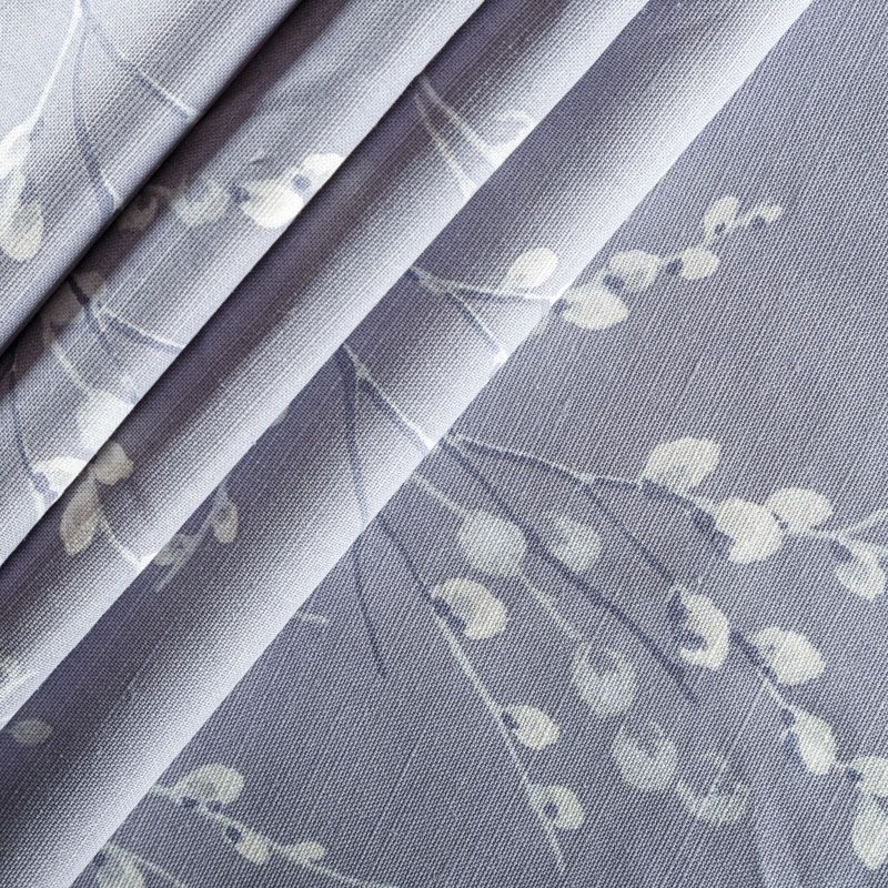 Хлопковая портьерная ткань с изящным весенним принтом в монохромной гамме на сером фоне. Ткань средней плотности, без блеска, хорошо драпируется, имеет полонтяное переплетение. Можно использовать для пошива портьер, римской шторы, салфеток, столового белья, подушек, покрывал и других предметов текстильного интерьера.