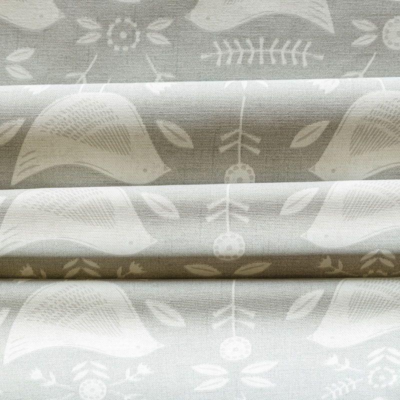 Хлопковая портьерная ткань Нарвик из коллекции Сканди английского производителя Fryett's Fabric. На светло-серой текстурированной основе наснесен принт в виде белых стилизованных птиц и цветов. Ткань средней плотности, прекрасно держит форму, драпируется в устойчивые складки. Подойдет для классических портьер, римских штор, покрывал, подушек, скатертей, салфеток и других элементов текстильного интерьера как в самостоятельном исполнении, так и качестве компаньона к однотонным варинтам.
