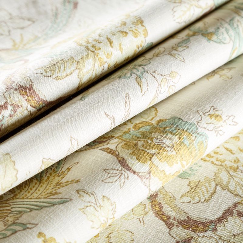 Элегантная ткань из коллекции Ренессанс известного бренда Fryett's с тропическим рисунком, выполненным в мельчайших деталях, нанесенных на текстурированную хлопковую основу. Ткань средней плотности, прекрасно держит форму, драпируется в устойчивые складки. Подойдет для плотных штор, покрывал, подушек, скатертей, салфеток  и других элементов текстильного интерьера как в самостоятельном исполнении, так и качестве компаньона к цветным варинтам.