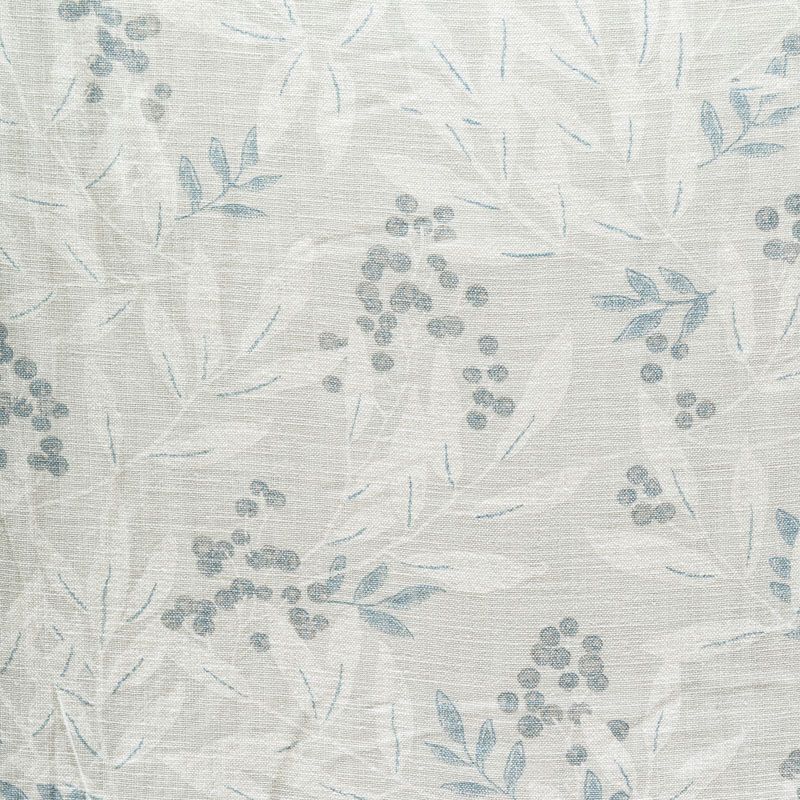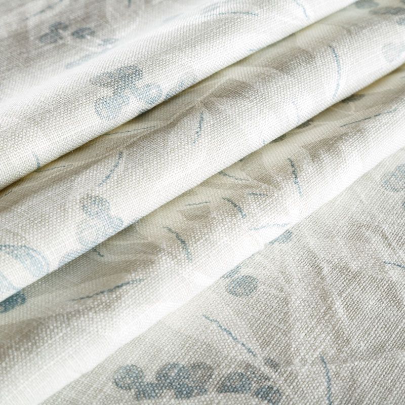 Натуральная хлопковая портьерная ткань с растительным принтом в пришлушенных серо-голубых оттенках. Ткань средней плотности, без блеска, хорошо драпируется, имеет полонтяное переплетение. Прекрасно подойдет для оформления детской, кухни, столовой или дачного интерьера. Можно использовать для пошива портьер, римской шторы, салфеток, столового белья, подушек, покрывал и других предсетов текстильного интерьера.