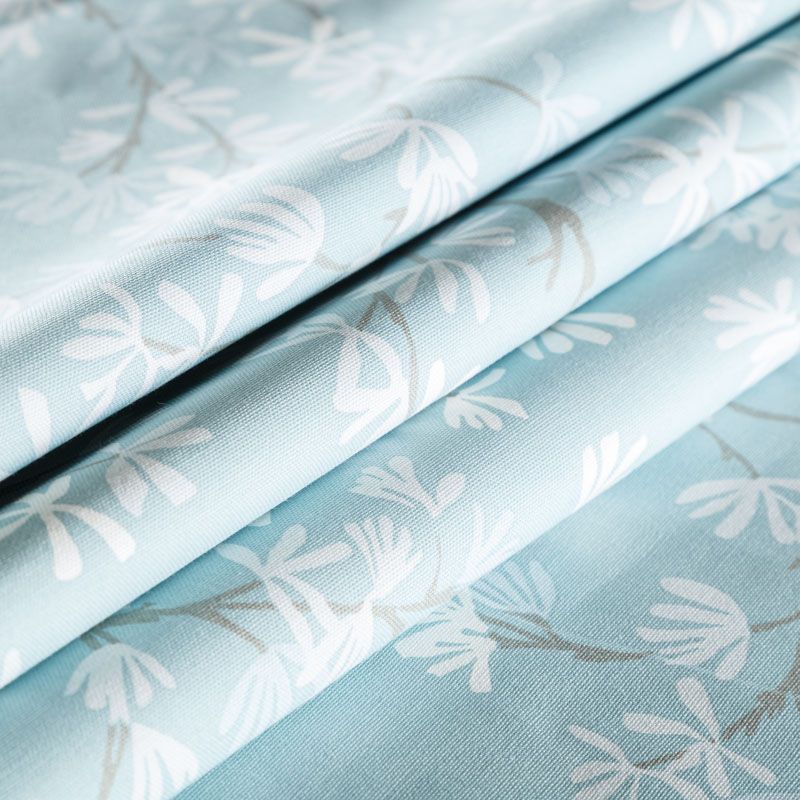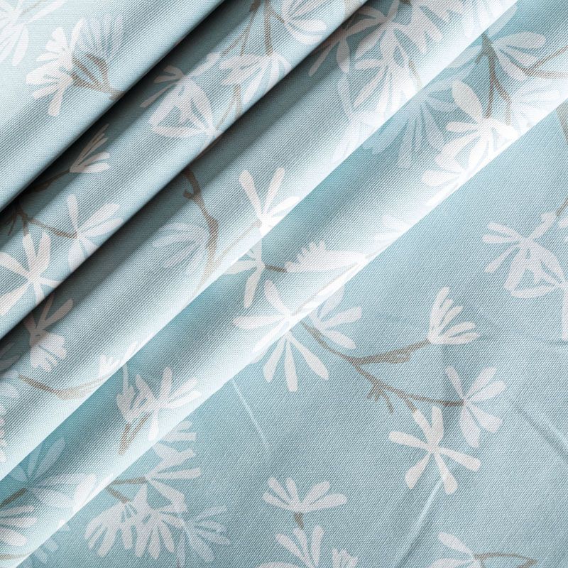 Хлопковая портьерная ткань английского производителя. На голубой текстурированной основе нанесен изящный растительный принт в серо-белой гамме. Ткань средней плотности, прекрасно держит форму, драпируется в устойчивые складки. Подойдет для классических портьер, римских штор, покрывал, подушек, скатертей, салфеток и других элементов текстильного интерьера как в самостоятельном исполнении, так и качестве компаньона к однотонным варинтам.