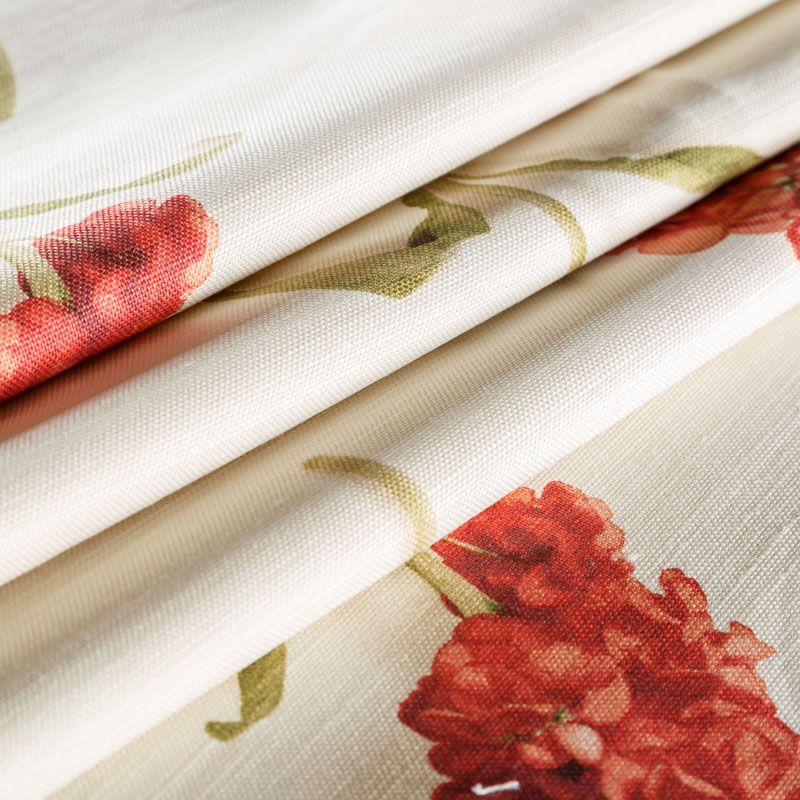 Хлопковая портьерная ткань английского производителя. На молочной текстурированной основе наснесен принт в виде ярких первоцветов. Ткань средней плотности, прекрасно держит форму, драпируется в устойчивые складки. Подойдет для классических портьер, римских штор, покрывал, подушек, скатертей, салфеток и других элементов текстильного интерьера как в самостоятельном исполнении, так и качестве компаньона к однотонным варинтам.