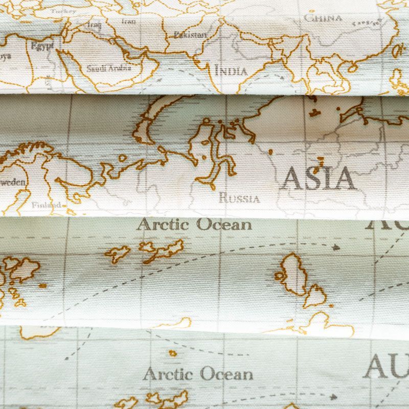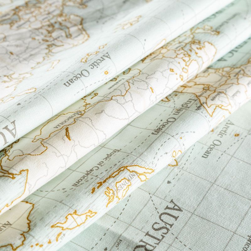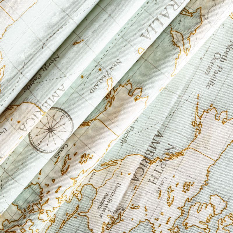 Хлопковая ткань с от английского производителя с гео принтом для юных искателей приключений и любителей путешествовать.Ткань средней плотности, без блеска, хорошо драпируется, имеет полонтяное переплетение. Прекрасно подойдет для оформления детской или дачного интерьера. Можно использовать для пошива портьер, римской шторы, салфеток, столового белья, подушек, покрывал, обивки мебели.