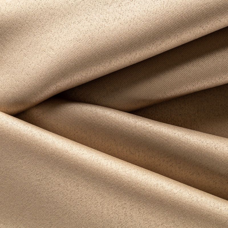 Двухстороняя плотная ткань. Обе стороны гладкие, имеют сатиновый легкий глянец. Ткань хорошо драпируется, укладываясь в крупные ниспадающие пластичные складки и позволяет использовать любые виды крепления для штор – люверсы, ленту, кольца.  Блокирует от 50 до 90 % проникновение света в помещении, не склонна к выгоранию и деформации. Удачно впишется в такие интерьеры, как эко, лофт, модерн в качестве портьер и других элементов текстильного оформления.