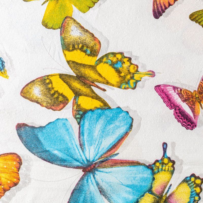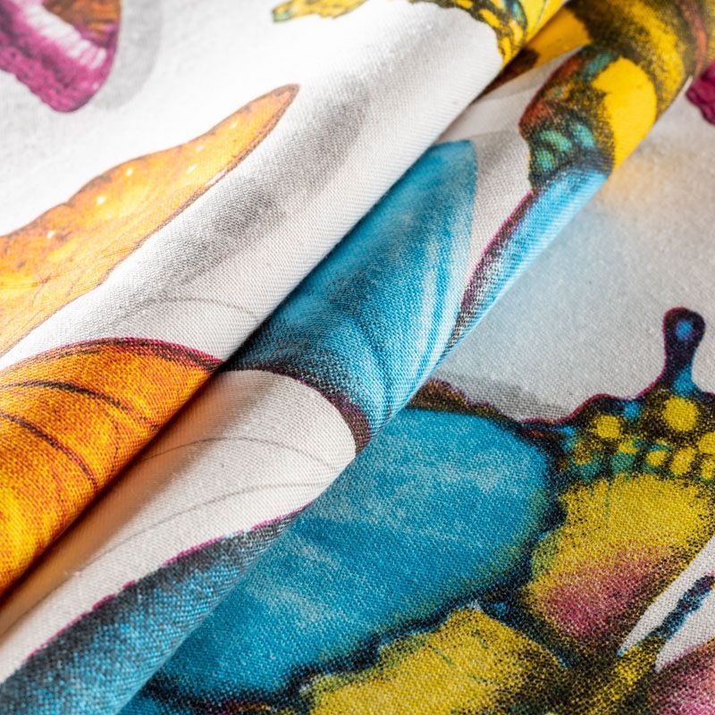 Испанская принтованная ткань с ярким летним дизайном, выполненным на смесовой основе. Ткань очень приятная на ощупь за счёт хлопка в составе и очень универсальная, прекрасно подойдет для оформления интерьеров в английском стиле, прованс, кантри, шебби шик. Может использоваться  для пошива портьер, римской шторы, покрывала, чехлов для мебели, скатертей, салфеток, подушек и других предметов тектильного интерьера.