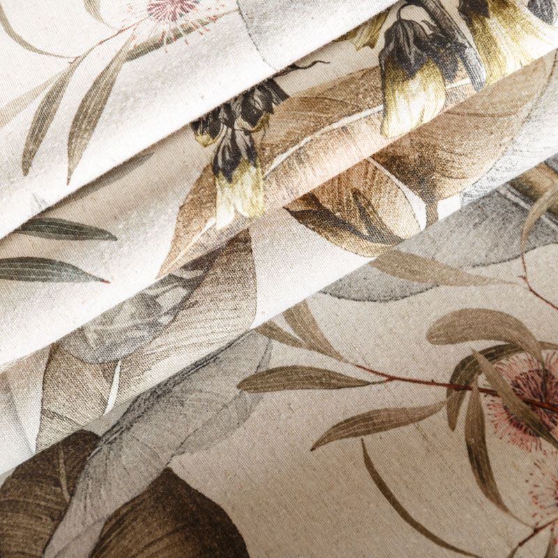 Декоративный смесовый хлопок с тропическим растительным принтом от испанского производителя Visatex. Ткань средней плотности, приятная и гладкая на ощупь. Интересный вариант для пошива штор, декоративных подушек и покрывал, изготовления текстильных элементов в кухнях-столовых, гостинных, спальнях и даже детских.