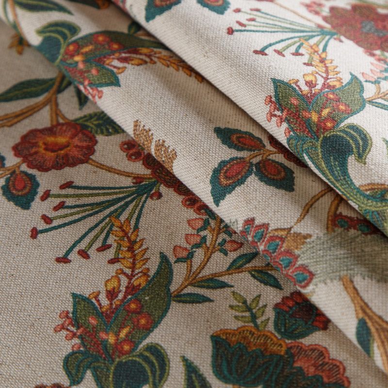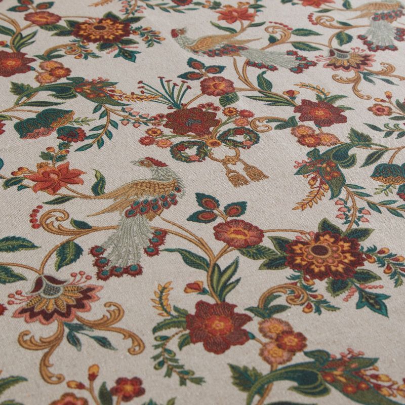 Декоративная портьерная ткань с шикарным натуральным составом и фантазийным принтом от испанского производителя Visatex. Ткань средней плотности, приятная на ощупь, слегка фактурная из-за натуральных вовлокон. Интересный вариант для пошива штор, декоративных подушек и покрывал, изготовления текстильных элементов в кухнях-столовых, гостинных, спальнях и даже детских.