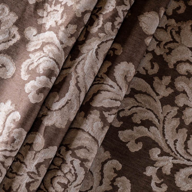 Натуральная льняная жаккардовая портьера с классическим растительным орнаментом в шоколадной цветовой гамме. Ткань плотная, тяжелая, может драпироваться в большие складки. Лен подойдет для плотных штор, покрывал, подушек, скатертей и салфеток, обивки мебели, Прекрасно впишется в интерьер как в совеременном стиле, так и в стиле прованс.