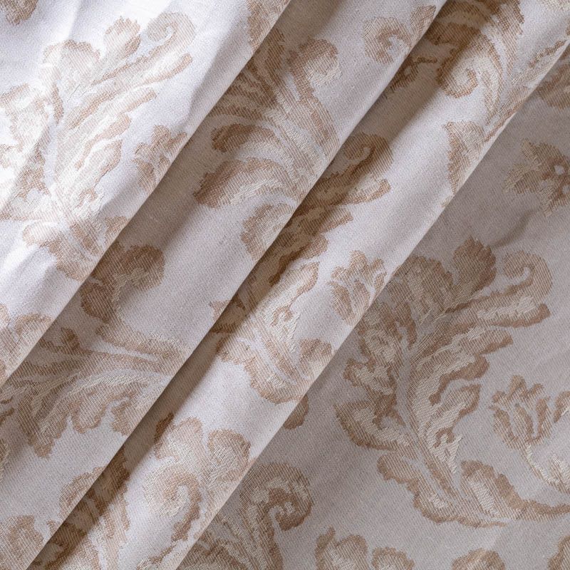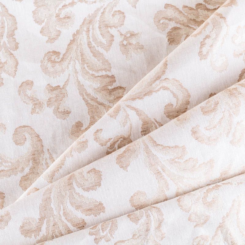 Натуральная льняная жаккардовая портьера с классическим растительным орнаментом в песочной цветовой гамме. Ткань плотная, тяжелая, может драпироваться в большие складки. Лен подойдет для плотных штор, покрывал, подушек, скатертей и салфеток, обивки мебели, Прекрасно впишется в интерьер как в совеременном стиле, так и в стиле прованс.