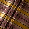 По своей структуре шелковые портьерные ткани являются мягким и красивым материалом, способным отражать свет. Изделия из шелка удивительно переливаются и блестят, придавая интерьеру помещения особую атмосферу и вид. Такие портьерные ткани лучше всего применять для создания покрывал, наволочек, штор, легких, воздушных и светлых. Ткань имеет вертикальные полосы в разных оттенках золотистого цвета, а так же сочетает в себе чередование полос матовой и блестящей текстур.