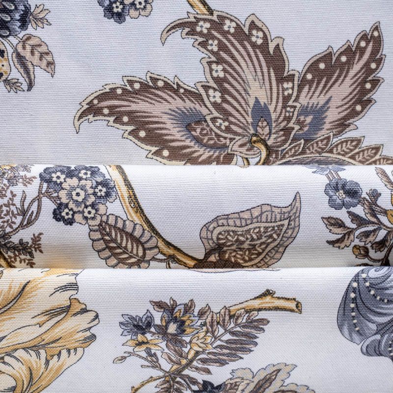 Принтованная ткань с цветочным дизайном, выполненный на смесовой основе. Ткань прекрасно подходят для оформления интерьеров в английском стиле. Фантазийные растения в коричнево-серых оттенках с крупными листьями представлены на рубчатой плотной основе полотняного плетения. Подойдет для пошива портьер, римской шторы, покрывала, чехлов для мебели, скатертей, салфеток, подушек.