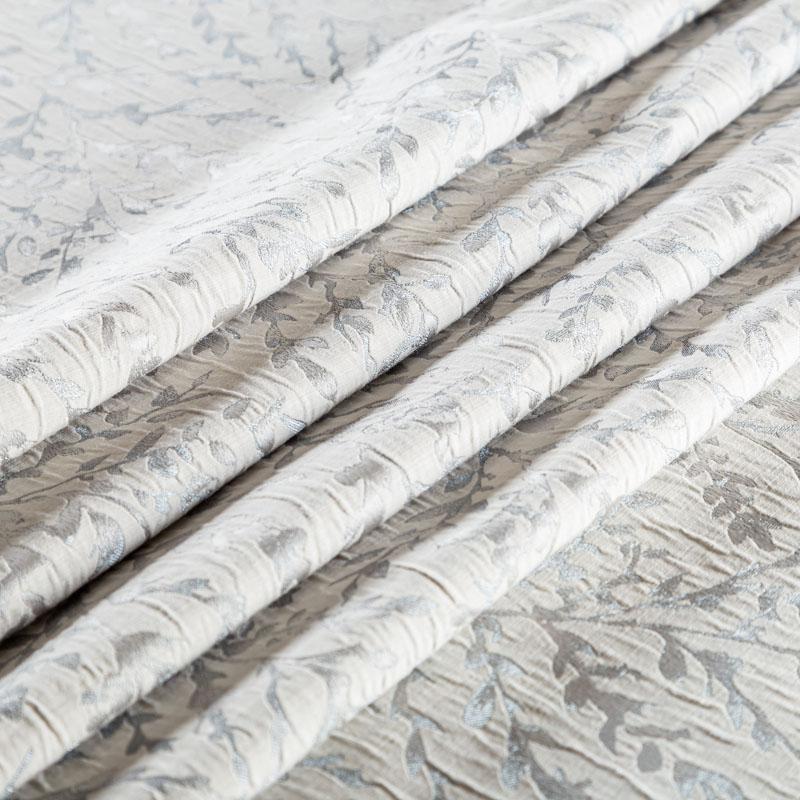 Стильная жаккардовая ткань светло-серого оттенка с великолепным растительным дизайном из коллекции Фабио известного бренда Fryett's. Ткань высокой плотности, имеет фактурную поверхность и сдержанный сатиновый блеск, прекрасно держит форму. Ткани этой коллекции прекрасно впишутся в традиционный и современный интерьер в качестве римской или классической шторы, подушек, обивки мебели.