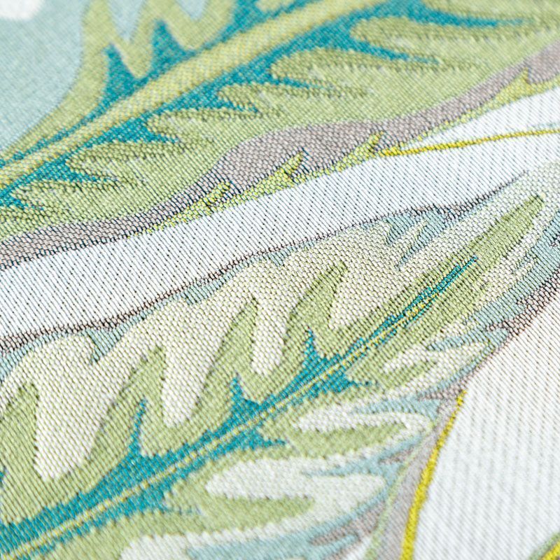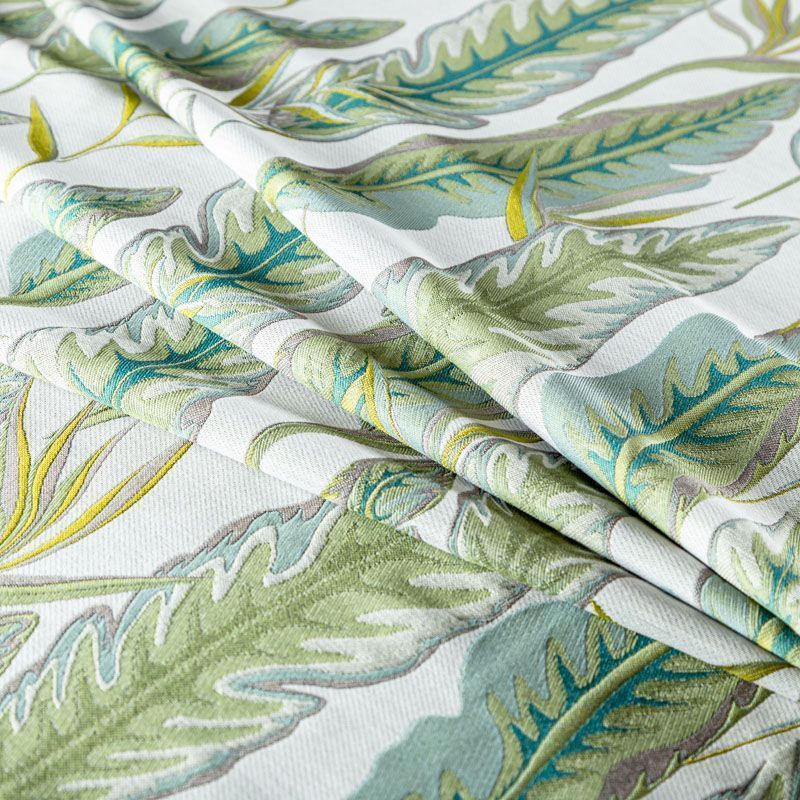Акцентная жаккардовая ткань зеленого оттенка с потрясающим растительно-анималистическим дизайном из коллекции Бродсфорт известного бренда Fryett's. Ткань средней плотности, имеет фактурную, матовую поверхность, прекрасно держит форму. Ткани этой коллекции прекрасно впишутся в традиционный и современный интерьер в качестве римской или классической шторы, подушек, обивки мебели.