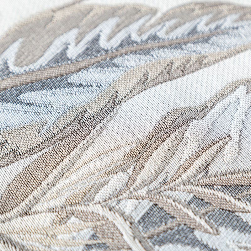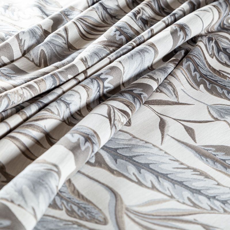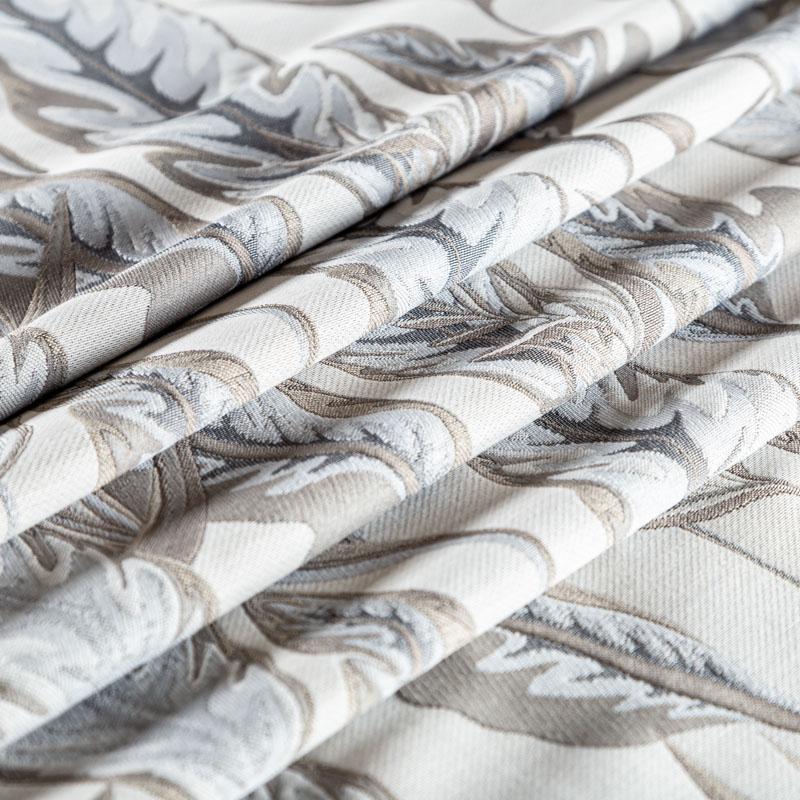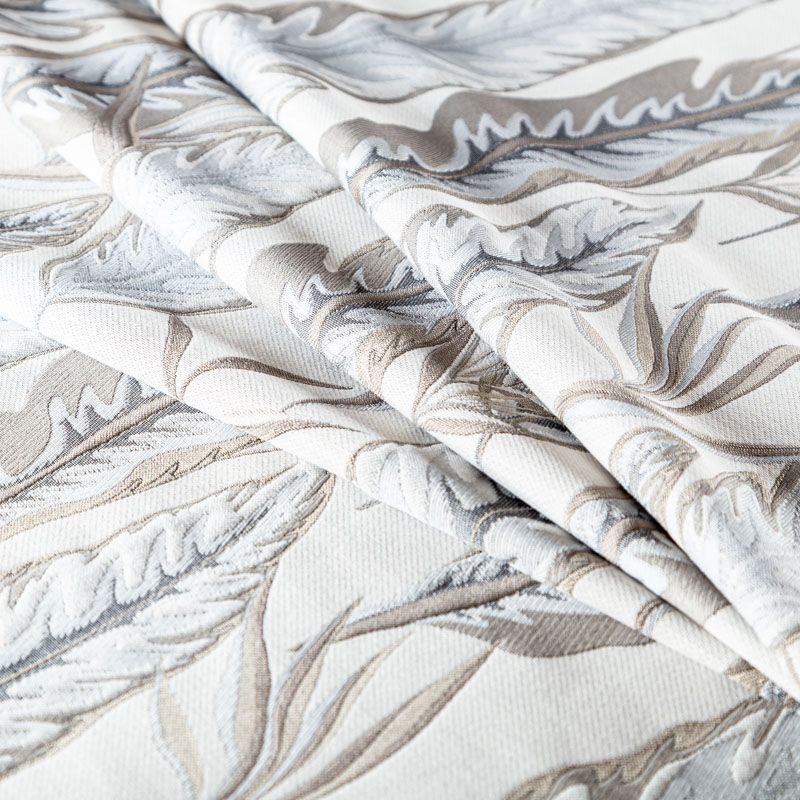 Акцентная жаккардовая ткань светло-серого оттенка с потрясающим растительно-анималистическим дизайном в желтых цветах из коллекции Бродсфорт известного бренда Fryett's. Ткань средней плотности, имеет фактурную, матовую поверхность, прекрасно держит форму. Ткани этой коллекции прекрасно впишутся в традиционный и современный интерьер в качестве римской или классической шторы, подушек, обивки мебели.