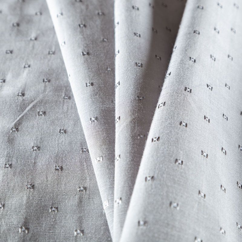 Изысканная портьерная ткань на хлопковой основе от известного бренда Fryett's с фактурной поверхностью, которая имитирует дикий шелк. Ткань средней плотности имеет сдержанный благородный блеск, хорошо держит форму и драпируется. Подойдет для портьер, римсой шторы, покрывал, подушек, скатертей, салфеток  и других элементов текстильного интерьера как в самостоятельном исполнении, так и качестве компаньона к цветным варинтам.