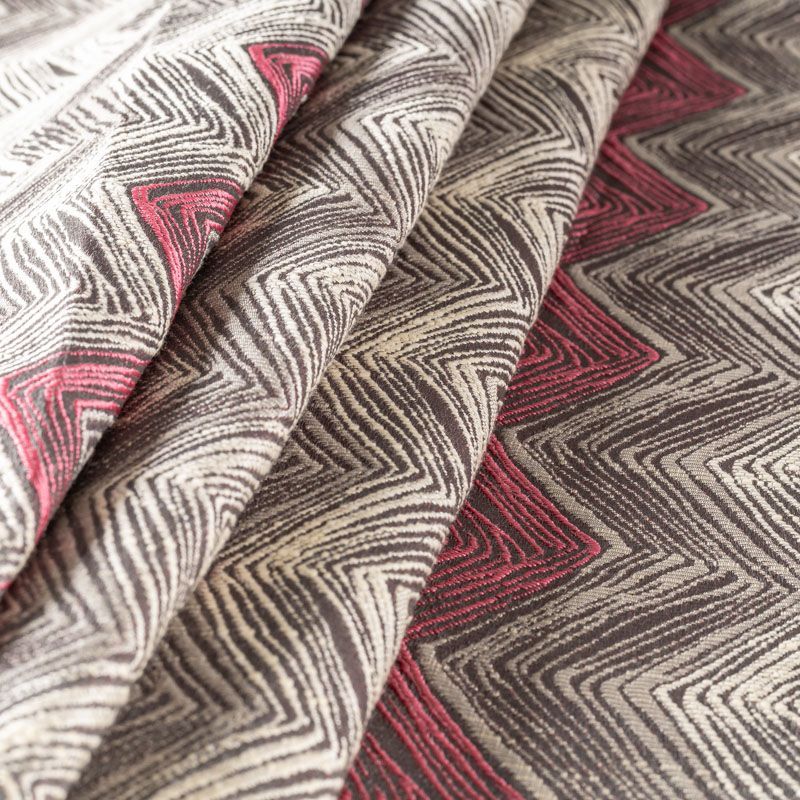 Оригинальная жаккардовая ткань с узнаваемым модным дизайном в стиле "Миссони",  прекрасно подойдет для современного интерьера. Ткань средней плотности, хорошо драпируется и держит форму. Подойдет в качестве штор для гостиной, спальни, кабинета, комнаты подростка, также можно использовать для пошива покрывала, декоративных чехлов, подушек, римской шторы.