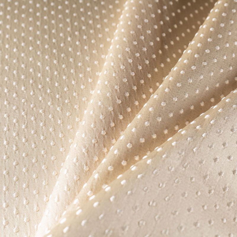 Универсальный жаккардовый рисунок в виде мелкого горошка молочного цвета идеален для оформления интерьера в большинстве стилей. Ткань средней плотности, хорошо держит форму и драпируется. Рекомендуется для пошива штор, декоративных чехлов, покрывал, изготовления столового белья, подушек, скатертей и салфеток.