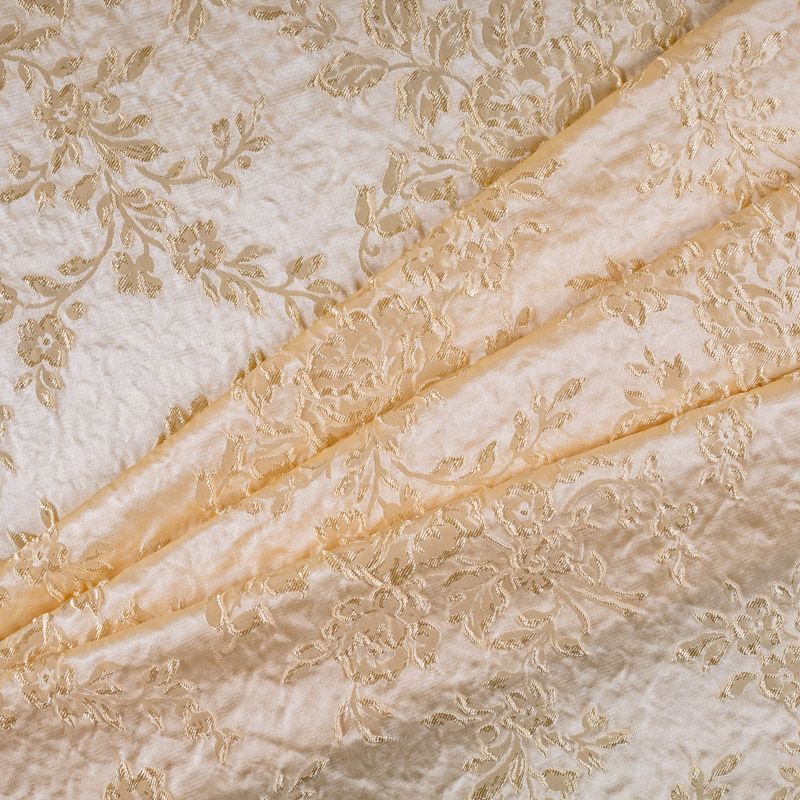 Элегантная коллекция шелковых жаккардов с цветочным рисунком выполненна в однотонном сдержанном варианте. Но различные ткацкие переплетения, использованные при создании ткани, создают объемность рисунка,  эффект роскоши придает благородный блеск полотна. Элементы мебели или декора, шторы и ламбрекены, выполненные с использованием этой ткани, создадут атмосферу наполняющую душу покоем и гармонией.