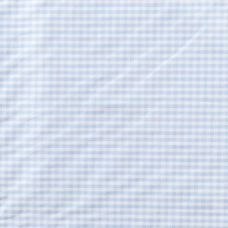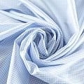 Итальянский плательно-рубашечный хлопок в голубую клеточку. Ткань мягкая, лёгкая, непрозрачная, пластичная и приятная к телу, хорошо драпируется, имеет гладкую матовую поверхность и сатиновое плетение. Прекрасно подойдет как для пошива платья-рубашки, сарафана, платьев различных фасонов, туники, топа, летнего костюма, комбинезона, детской и мужской одежды.