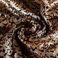 Пайетки с анималистическим узором в золотисто-черной гамме. Вышиты на черной эластичной сетке. Роскошно смотрится в блестящих нарядных комбинезонах, сверкающих платьях и искрящихся блузках, юбках, туниках, концертных костюмах, нарядах для танцев.  На ощупь полотно не тяжелое, достаточно пластичное и удобное в носке.