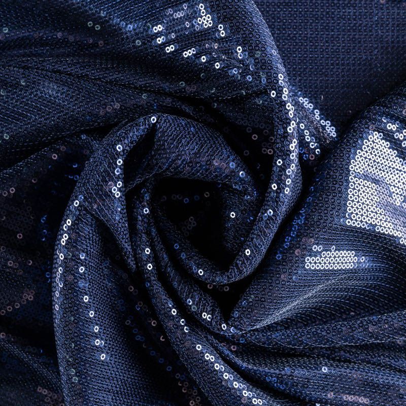 Блестящие пайетки благородного синего оттенка. Мелкие, размером около 3 мм. Основа - трикотажное полотно, комфортное в носке. Ткань не прозрачная, тянется.  Подойдет для вечернего коктельного платья или юбки, комбинезона, топа, танцевальных и сценических костюмов.