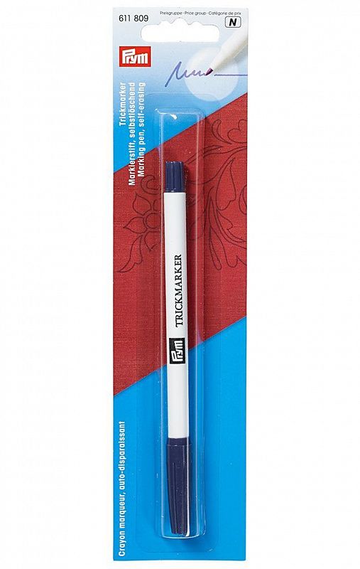 Маркер используется при вышивке, пэчворке, шитье, квилтинге. Следы исчезают через несколько дней сами, время зависит от типа и плотности ткани. Также маркировку легко удалить водой, путем протирания влажной тканью или с помощью водяного карандаша Prym 611823. Рекомендуем протестировать действие маркера перед началом работы на небольшом лоскуте ткани.
