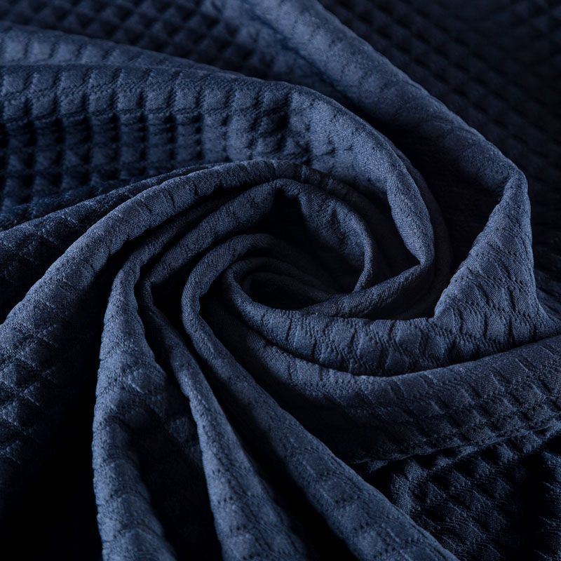 Плотное трикотажное полотно с имитацией стежки. Поверхность ткани объемная, мягкая, приятная на ощупь. Трикотаж не просвечивается, хорошо тянется за счет эластана в составе, держит форму. Прекрасно подойдет для пошива легких пальто, курток, бомберов, кардиганов, платьев, юбок, шорт.