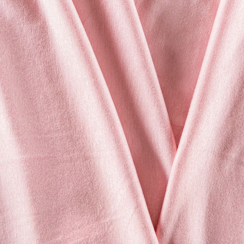 Тонкий вискозный трикотаж розового оттенка с гладкой поверхностью, который особенно эффектно смотрится в драпировке. Материал не просвечивает, приятный к телу и комфортный в носке. Подойдет для пошива топов, футболки, бадлонов, лонгслива, кардигана, спортивного платья.