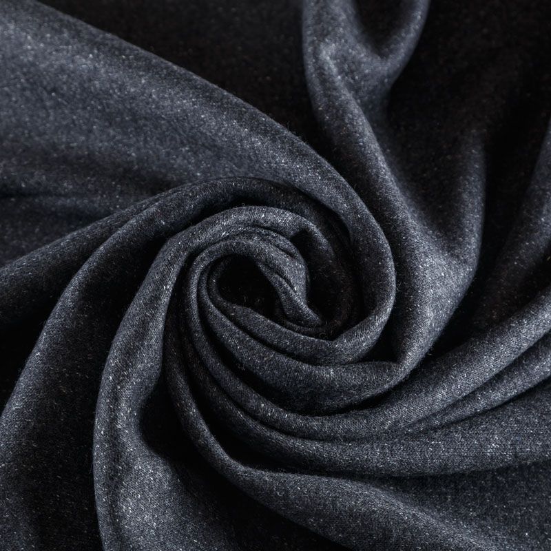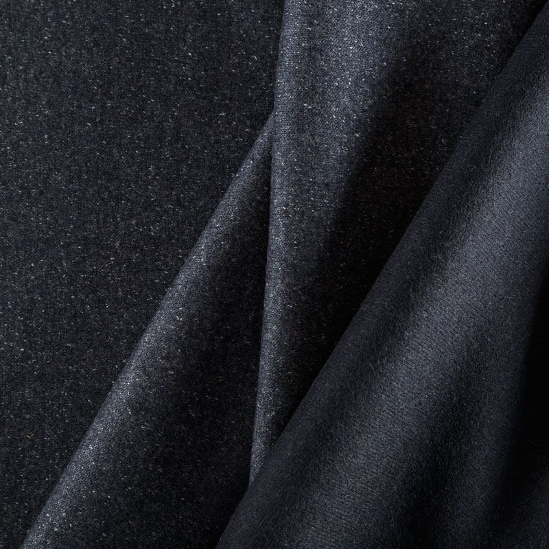 Плотное итальянское шерстяное трикотажное полотно с вязаной фактурой графитового оттенка с вкраплениями белого. Ткань прочная и практичная в носке, отлично держит форму, упругая, тянется в поперечном направлении. Подойдет для прямых силуэтов изделий, а также объемных в стиле оверсайз, для пошива теплого жакета, пальто на подкладе, пончо, кардигана, жилета, теплого бомбера, юбки, платья.