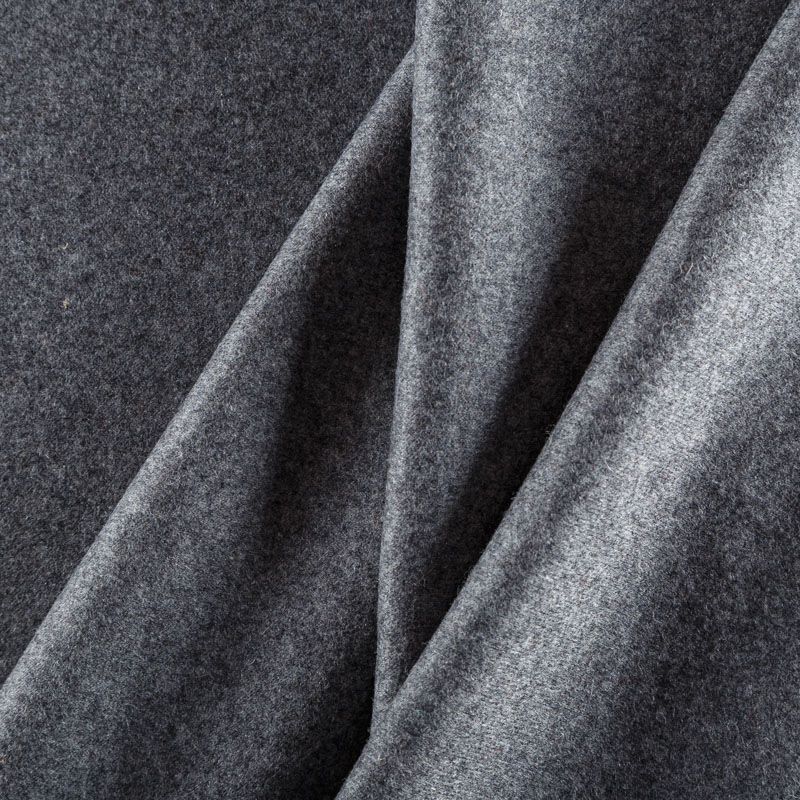 Плотное итальянское шерстяное трикотажное полотно с вязаной фактурой серого оттенка с вкраплениями белого. Ткань прочная и практичная в носке, отлично держит форму, упругая, тянется в поперечном направлении. Подойдет для прямых силуэтов изделий, а также объемных в стиле оверсайз, для пошива теплого жакета, пальто на подкладе, пончо, кардигана, жилета, теплого бомбера, юбки, платья.
