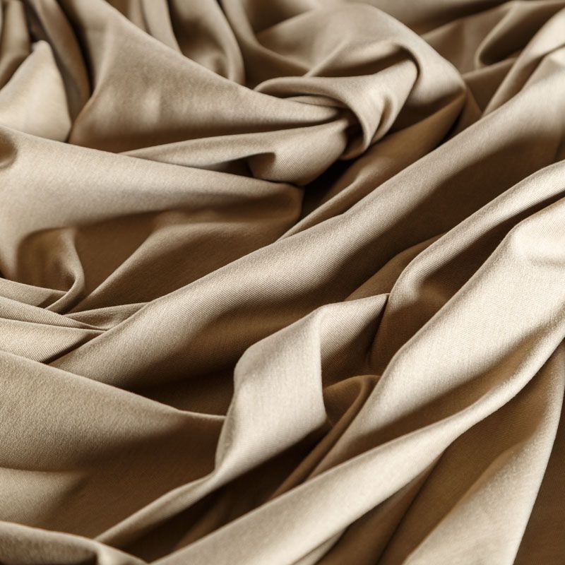 Смесовое трикотажное полотно с гладкой однородной поверхностью, которое особенно эффектно смотрится в драпировке. Материал средней плотности, не просвечивает, приятный к телу и комфортный в носке. Подойдет для пошива топов, футболок, бадлонов, лонгслива, кардигана, спортивного платья, джоггеров, шорт.