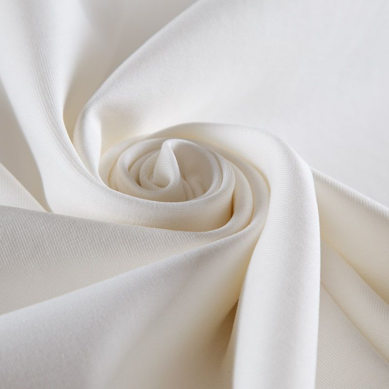 Трикотажное полотно средней плотности с хорошим смесовым составом. Материал очень мягкий, пластичный, тянется за счет эластана в составе. Поверхность гладкая, матовая, не просвечивает. Отлично подойдет для пошива изделий свободных и прилегающих силуэтов: платьев, лонгсливов, футболок, спортивной одежды. Трикотаж почти не мнется, очень прочный на разрыв.