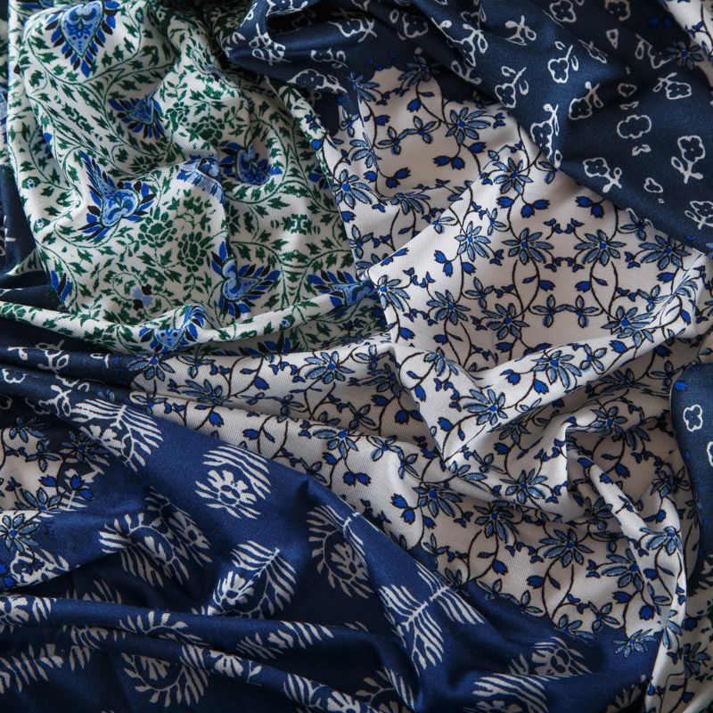 Итальянский хлопковый трикотаж с принтом в стиле пэчворк.