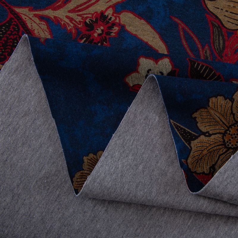 Трикотаж двухсторонний 056-19654 темно-синий принтованный в Нарьян-Маре