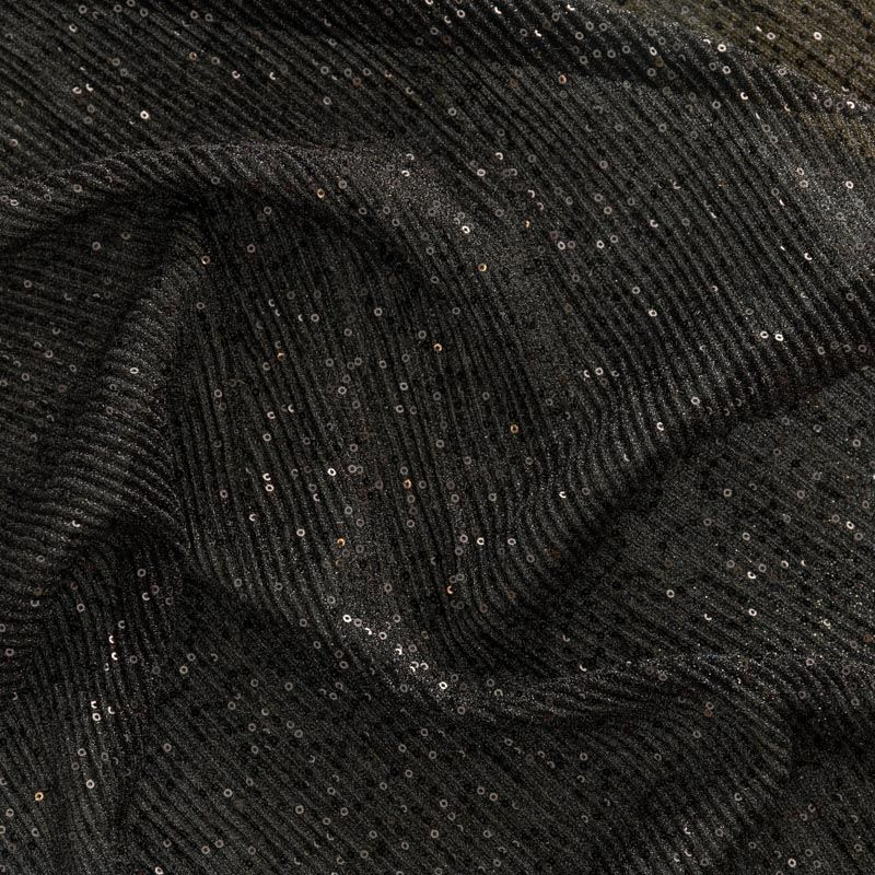Трикотаж гофре 1120-341-056-0026 черный с пайетками