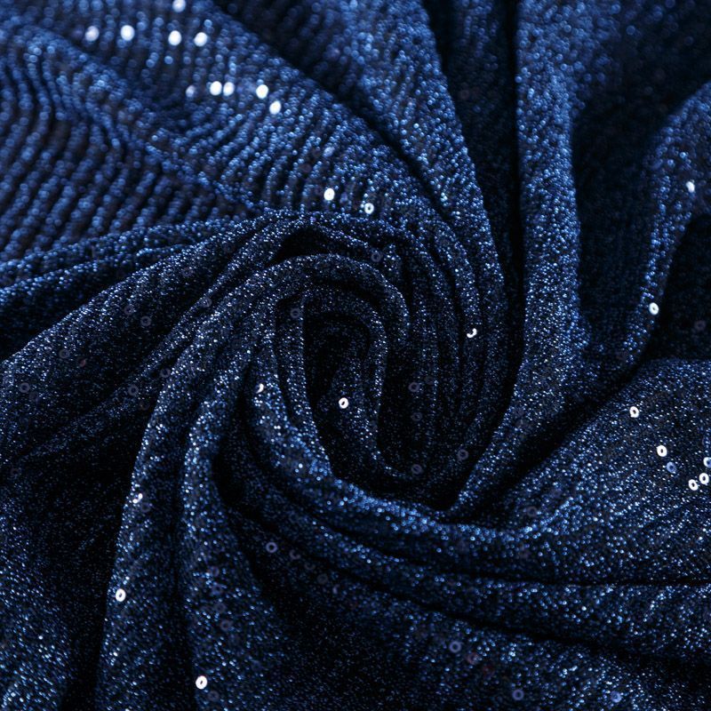 Трикотаж-гофре с пайетками 056-09128 сапфировый однотонный