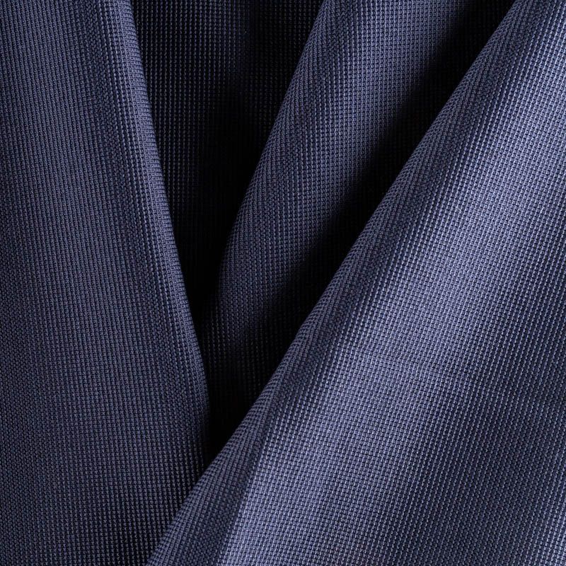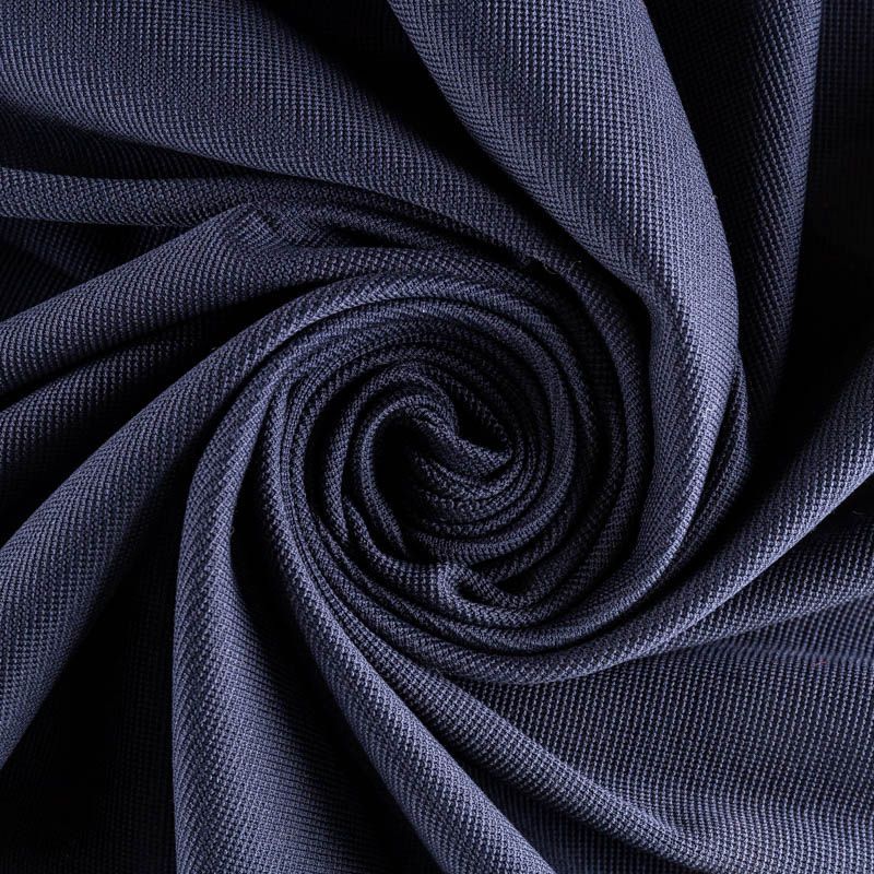 Итальянский плотный трикотаж  из вискозы глубокого синего цвета. Поверхность с поперечными полосочками. Трикотаж пластичный, но держит форму, а также упругий и прочный, хорошо тянется, не просвечивает. Прекрасно подойдет для жакетов, кардиганов, платьев с четким силуэтом, юбки.