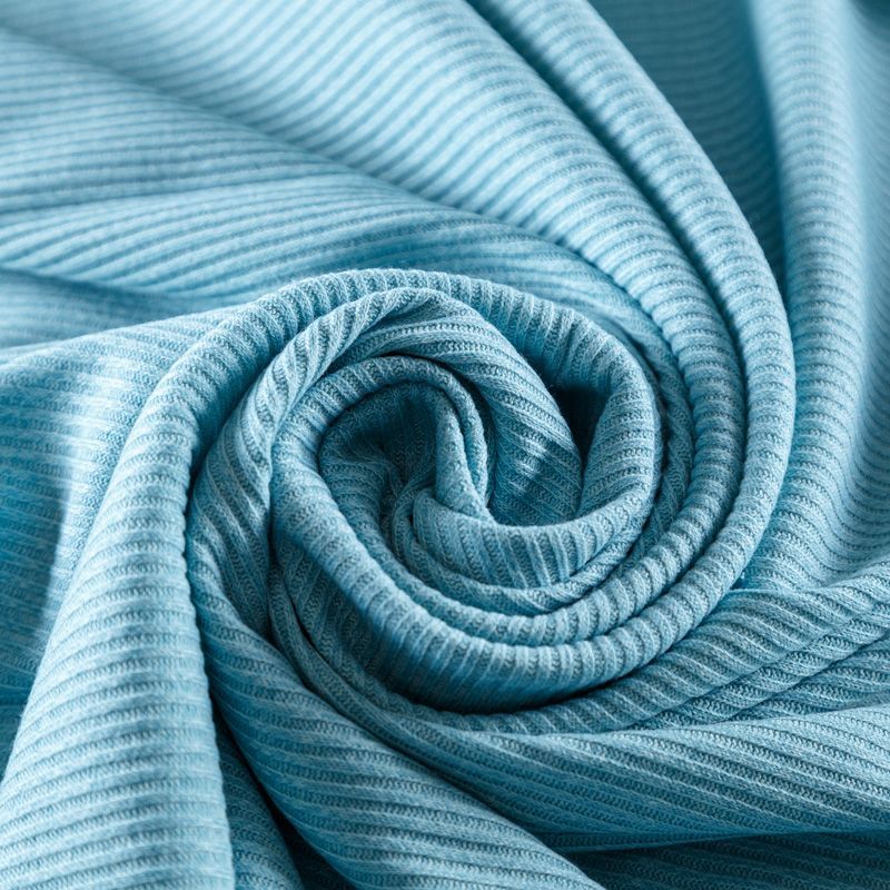 Трикотаж-лапша средней плотности, с высокой степенью эластичности, поверхность рельефная за счет эффекта резинки. С изнанки трикотаж гладкий, комфортный, подходит для использования без подклада. Сшить из такого полотна можно топы, лонгсливы, водолазки, платья,  юбки, брючные комплекты. Направление полос - вдоль линии кромки.