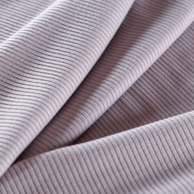 Трикотаж-лапша средней плотности, с высокой степенью эластичности, поверхность рельефная за счет эффекта резинки. С изнанки трикотаж гладкий, комфортный, подходит для использования без подклада. Сшить из такого полотна можно топы, лонгсливы, водолазки, платья,  юбки, брючные комплекты. Направление полос - вдоль линии кромки.