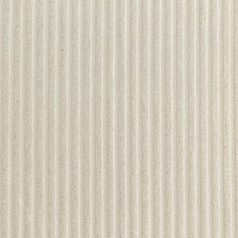 Трикотаж-лапша средней плотности, с высокой степенью эластичности, поверхность рельефная за счет эффекта резинки и мерцающая за счет металлизированного напыления. С изнанки трикотаж гладкий, комфортный, подходит для использования без подклада. Сшить из такого полотна можно водолазки, платья, топы, юбки, комплекты, нарядные изделия. Направление полос - вдоль линии кромки.