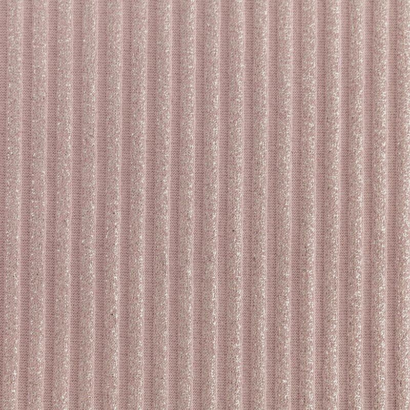 Трикотаж-лапша средней плотности, с высокой степенью эластичности, поверхность рельефная за счет эффекта резинки и мерцающая за счет металлизированного напыления. С изнанки трикотаж гладкий, комфортный, подходит для использования без подклада. Сшить из такого полотна можно водолазки, платья, топы, юбки, комплекты, нарядные изделия. Направление полос - вдоль линии кромки.