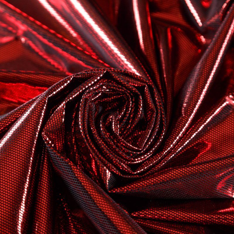 Эффектное трикотажное полотно с насыщенным глянцевым блеском. Материал очень пластичный, образует струящиеся мягкие складки, отлично тянется, не просвечивает, не мнется. Изнаночная сторона матовая, приятная на ощупь. Идеальный выбор для нарядных моделей, гимнастических и танцевальных костюмов.