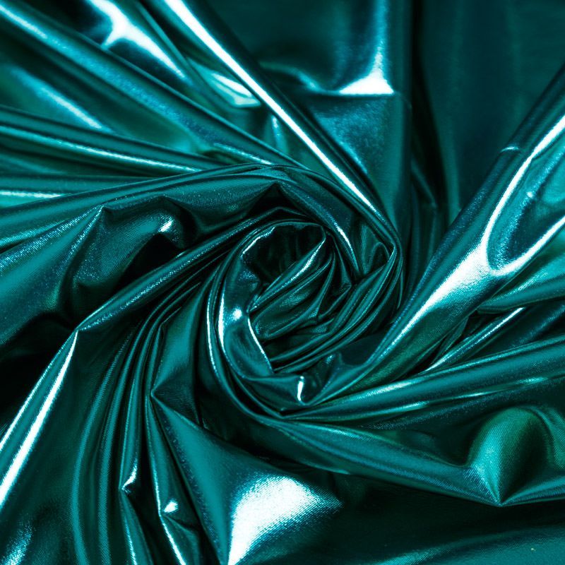 Эффектное трикотажное полотно с насыщенным глянцевым блеском. Материал очень пластичный, образует струящиеся мягкие складки, отлично тянется, не просвечивает, не мнется. Изнаночная сторона матовая, приятная на ощупь. Идеальный выбор для нарядных моделей, гимнастических и танцевальных костюмов.
