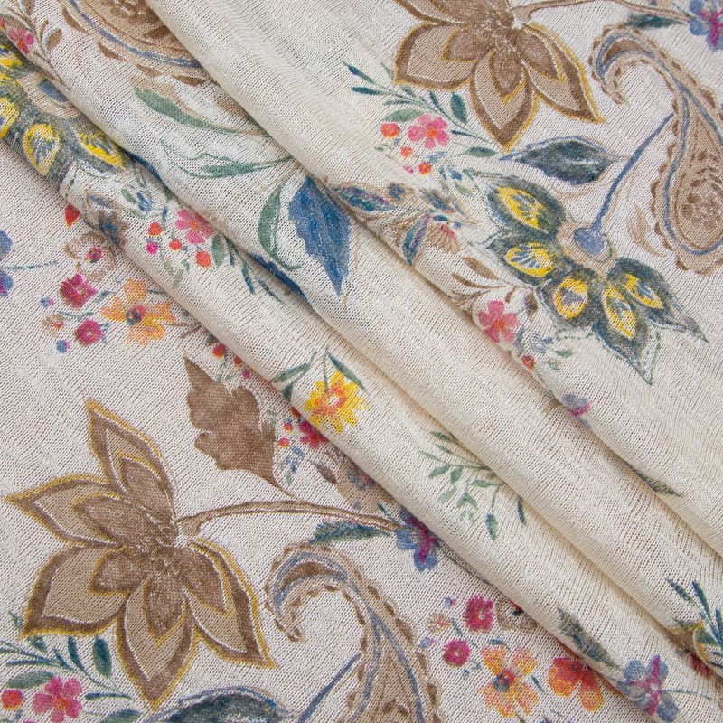 Трикотаж льняной 056-20088 экрю принтованный в Нарьян-Маре