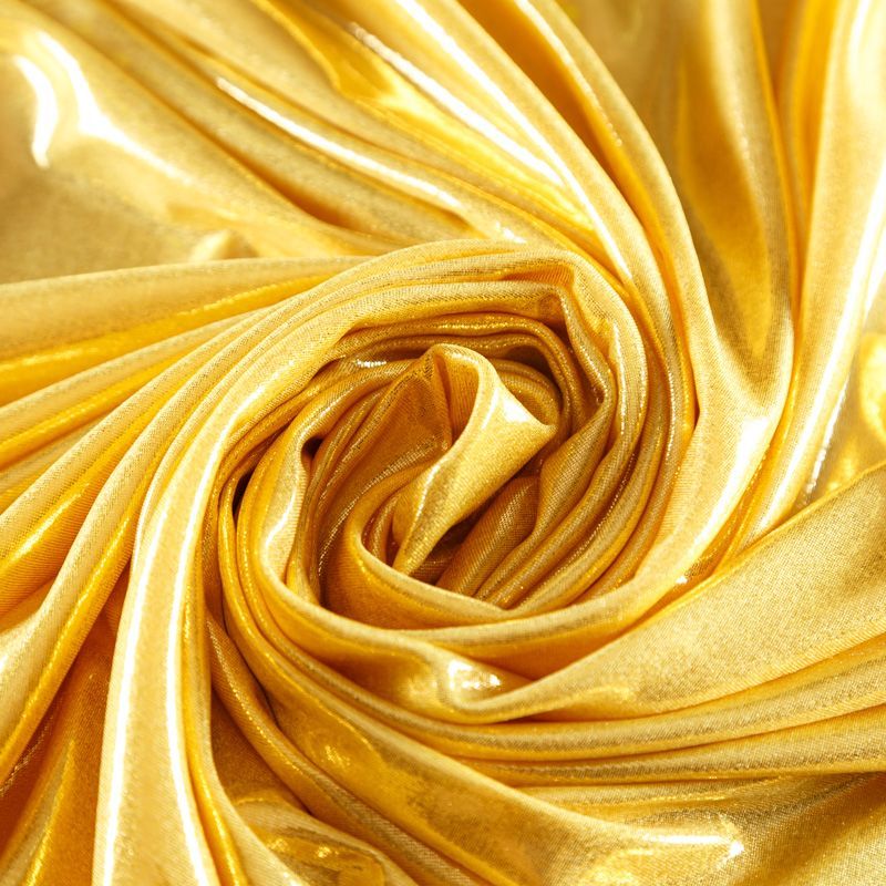 Эффектное трикотажное полотно с мерцающим напылением. Материал очень пластичный, образует струящиеся мягкие складки, отлично тянется, не просвечивает, не мнется. Изнаночная сторона матовая, приятная на ощупь. Идеальный выбор для нарядных платьев, топов, маек, гимнастических и танцевальных костюмов.