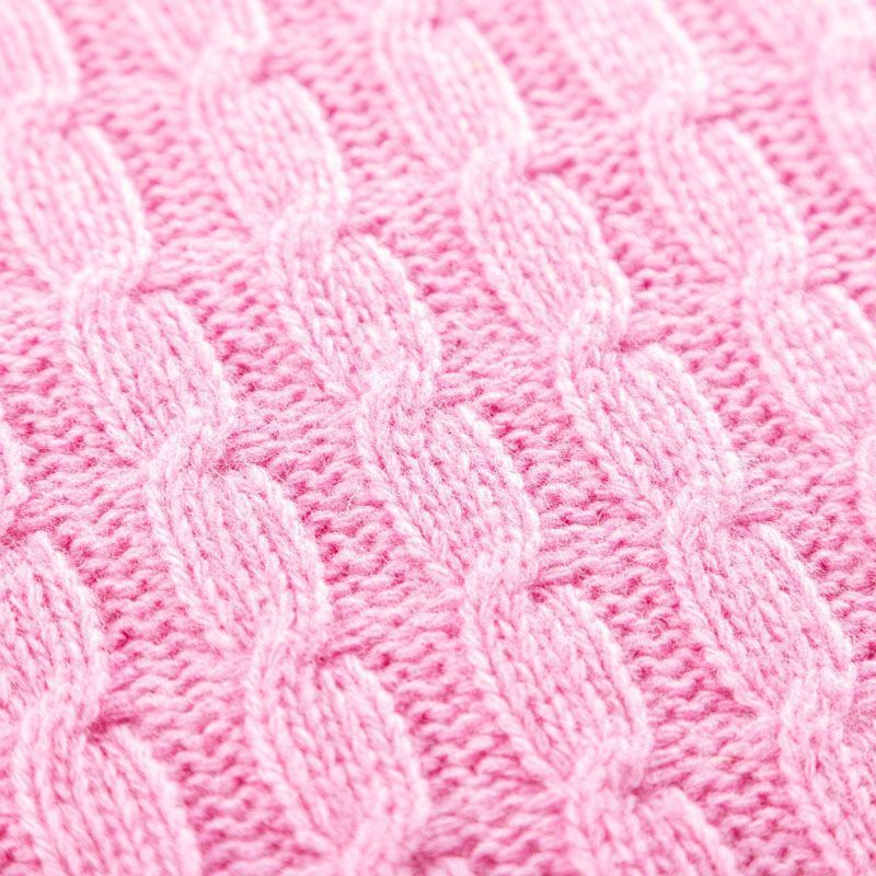 Итальянский шерстяной трикотаж розового оттенка с ажурными вязаными "косами". Полотно плотное, мягкое, эластичное, не просвечивает. Прекрасно подойдет для пошива теплых и уютных свитеров, кардиганов, жилета, платьев, шарфов, палантинов, пончо или снудов.