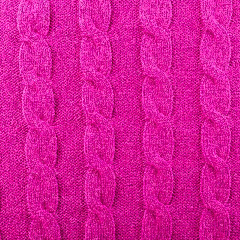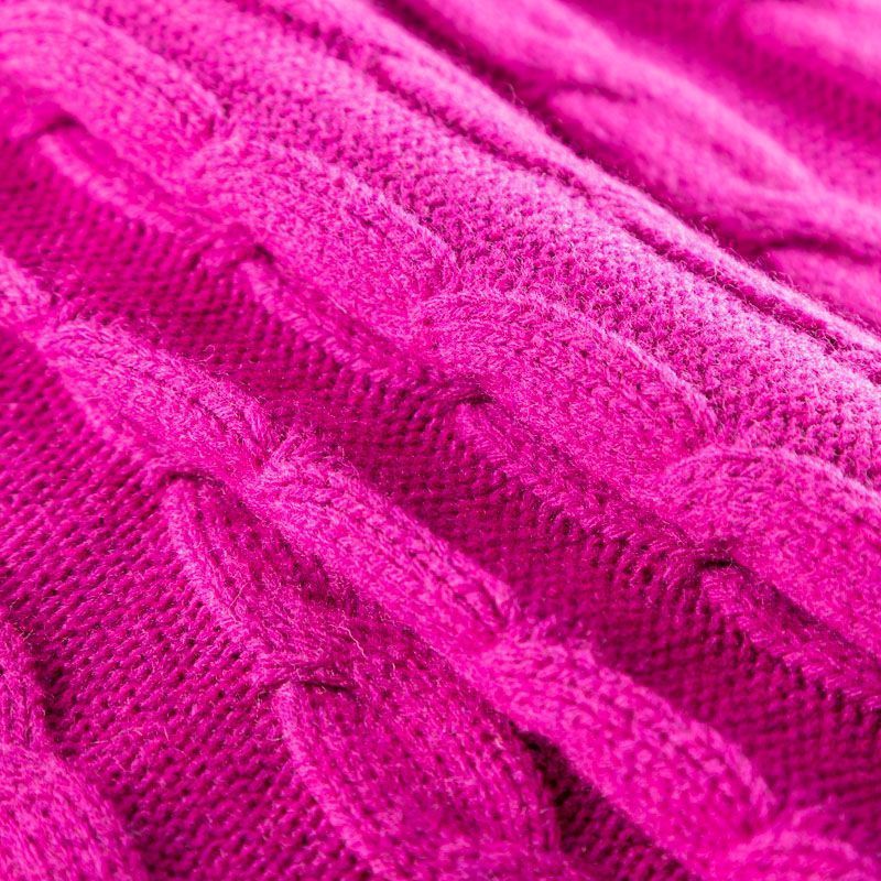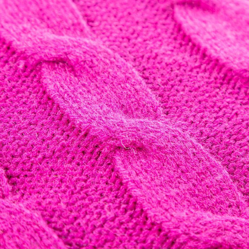 Итальянский шерстяной трикотаж насыщенного оттенка фуксии с крупными ажурными вязаными "косами". Полотно плотное, мягкое, эластичное, не просвечивает. Прекрасно подойдет для пошива теплых, объемных уютных свитеров, кардиганов, жилета, платьев, шарфов, палантинов, пончо или снудов.